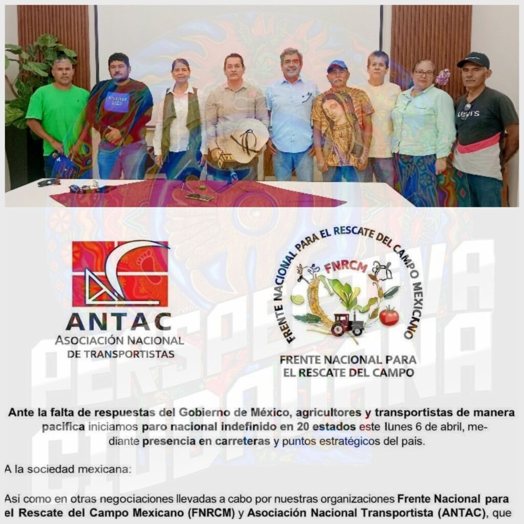 La Asociación Nacional de Transportistas (ANTAC) reiteró su convocatoria a movilizaciones este 6 de abril, luego del posicionamiento de la Secretaría de Gobernación, que afirmó que no existen razones para que organizaciones del transporte y del campo se manifiesten.