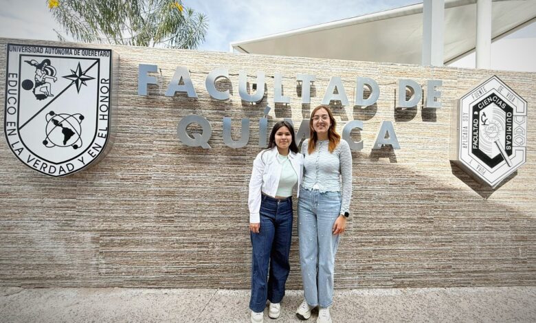 Las estudiantes Natalia Pacheco Aguilar y Sofía Jiménez Lugo, de octavo semestre de Ingeniería en Biotecnología de la Facultad de Química de la Universidad Autónoma de Querétaro (UAQ), participaron en el programa “Talentos IQ”, organizado por el Instituto de Química (IQ) de la Universidad Nacional Autónoma de México (UNAM), en la Ciudad de México, mediante una estancia académica de cuatro días, tras cumplir con los requisitos establecidos en la convocatoria, con el objetivo de acercarse a la actividad profesional e investigativa en el área de la química.