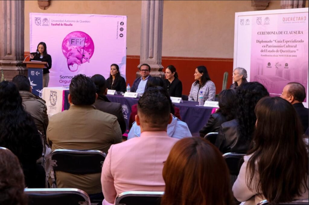 Con el objetivo de profesionalizar el sector turístico, la Universidad Autónoma de Querétaro (UAQ), a través de la Facultad de Filosofía (FFi), llevó a cabo la entrega de constancias del Diplomado de Formación de Guías Especializados en Patrimonio Cultural del Estado de Querétaro.