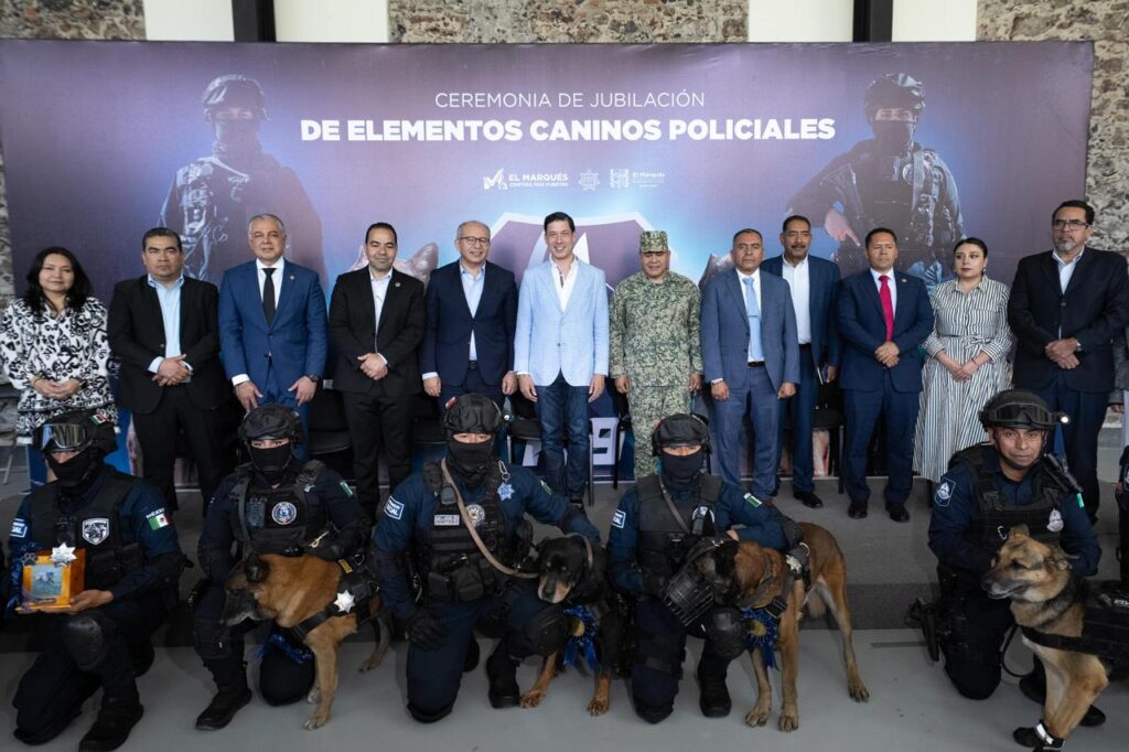 El presidente municipal de El Marqués, Rodrigo Monsalvo Castelán, encabezó en el municipio mismo la ceremonia de jubilación de tres elementos caninos policiales y un homenaje póstumo a un cuarto ejemplar de la Unidad K9 de la Secretaría de Seguridad Pública Municipal (SSPM), acto en el que se reconoció su trayectoria tras participar hasta por 10 años en labores de vigilancia preventiva, atención de reportes ciudadanos y operativos especiales. La ceremonia se realizó en un acto solemne con la presencia de autoridades municipales, estatales y representantes de corporaciones de seguridad de la región.
