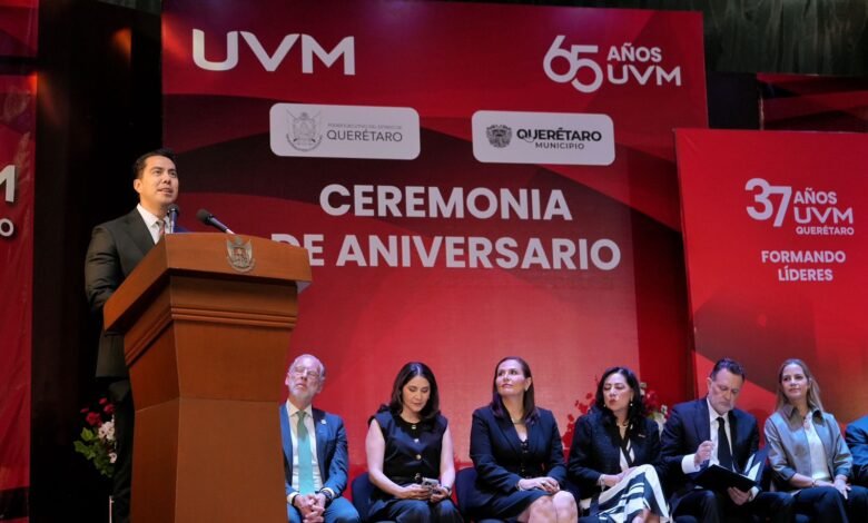 La Universidad del Valle de México (UVM) celebró su 65aniversario y el 37 aniversario de su Campus Querétaro en un evento que reunió a líderes del ámbito académico y gubernamental. Entre ellos asistieron el gobernador Mauricio Kuri González, la presidenta del Sistema Estatal DIF, Car Herrera, y el presidente municipal de Querétaro, Felifer Macías, quienes destacaron el impacto de la institución en la formación de profesionistas y en el crecimiento del estado.